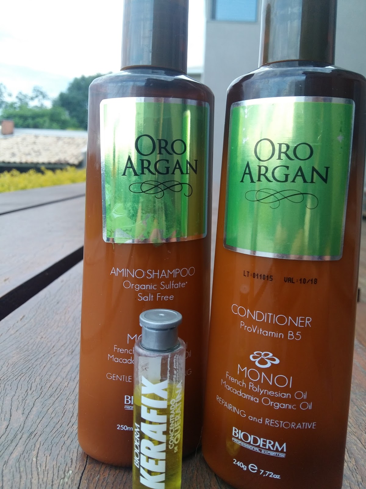 Depois de ver algumas resenhas, optei por essa linha Oro Argan e também pedi a ampola de queratina para testar. Gostei de todos os produtos e o preço é ótimo. Paguei 39$ no kit e 9.90 na ampola, fora o frete. Encomendei direto no site da marca que ainda tem muitos produtos variados de beleza.